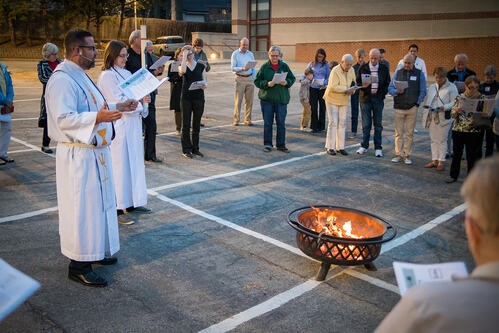 (We will gather in the south parking lot around the fire pit to begin worship, weather permitting. There is also a champagne reception with live music following worship.)