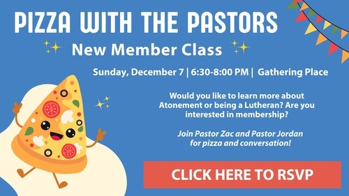 Join us for Pizza with the Pastors, or email Pastor Zac Sturm for more information on becoming a member of the Atonement family!