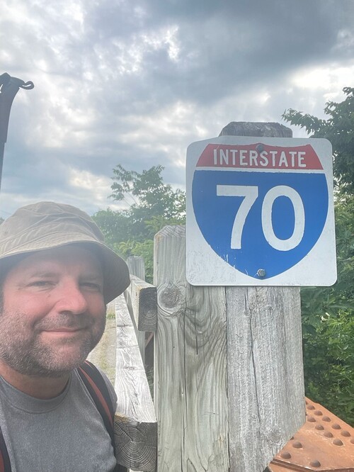 I crossed I-70 today near Boonville, MO. I tried to hitch a ride to St. Louis but no one would pick me up. Guess I have to keep walking 🙂.